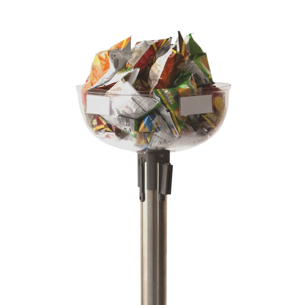 Sell up to 400% more impulse merchandise our easy fill post top barrier merchandising bowl.