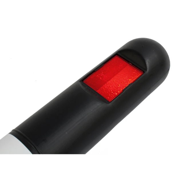 Each bollard features a red and a white main reflector at the top. These are placed so that the red reflector is on the near side of the road (passenger side). The white reflective areas around the main body of the marker further boost visibility.