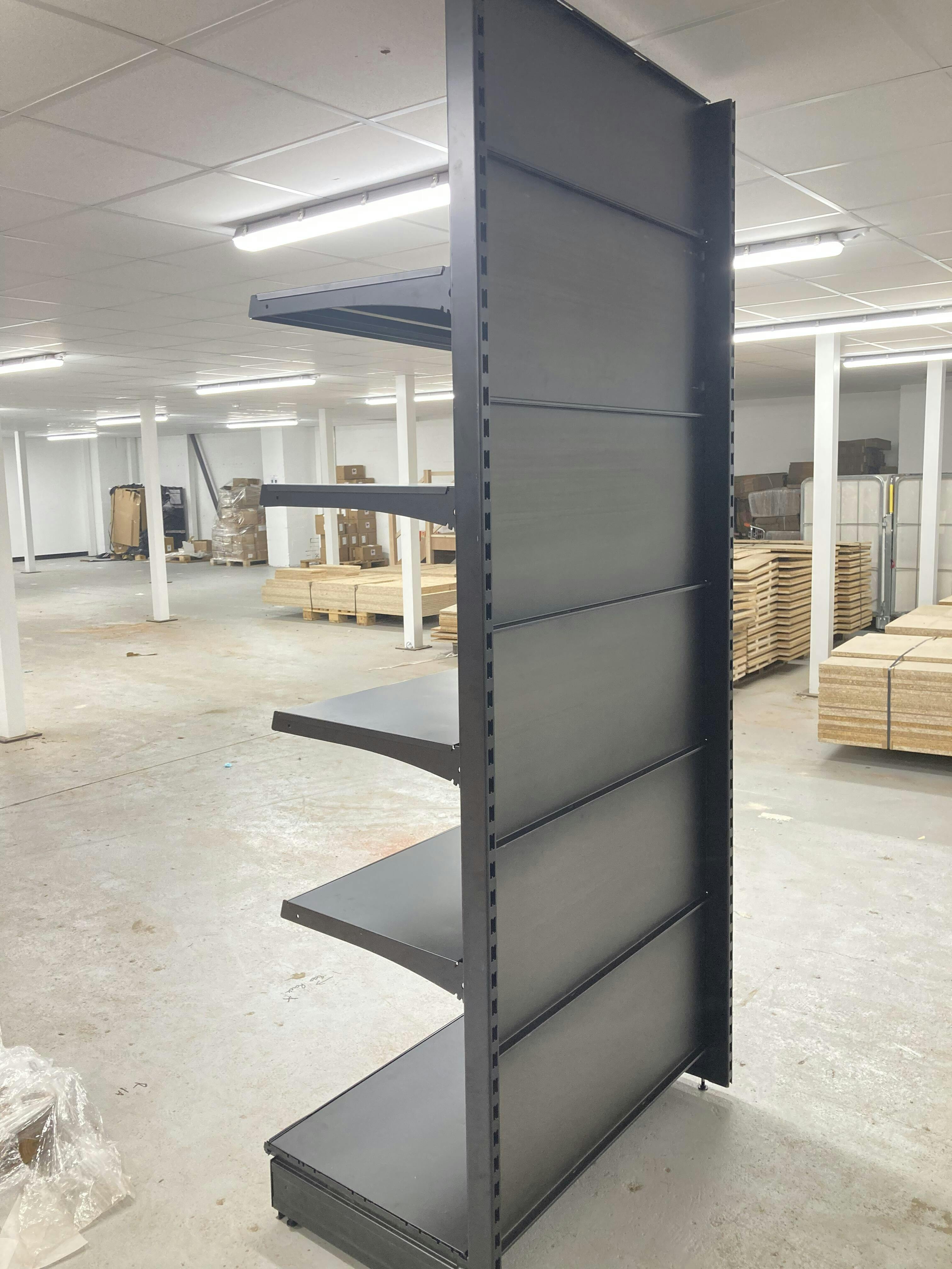 Each 2.4m wall shelving unit can be configured to suit your requirements. The largest 570mm base shelf is around 7 baked beans cans deep and with 4 shelves above it comfortably fitting 3-5 baked bean cans deep, you will have plenty of room for stock. All of our wall shelving bays can be connected together to create a seamless look and allow you to fit out your store in the most efficient way possible.